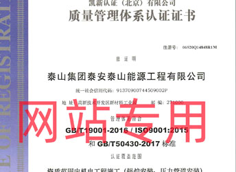 質(zhì)量管理體系認證證書(鍋...